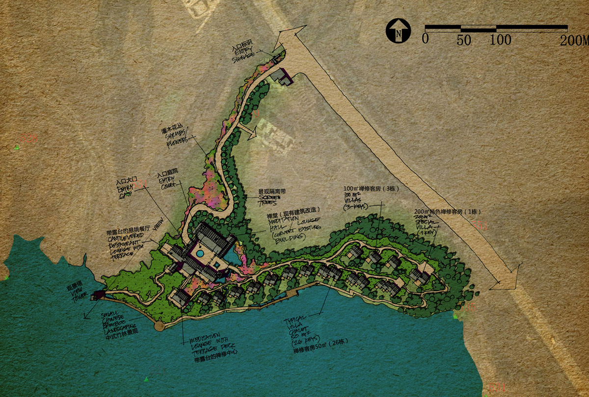 项目位于登封少林水库北岸,距少林寺约3公里。客户希望利用这里较好的山水环境和少林寺的禅宗文化积淀打造一处具有极高品质、集禅宗文化传习和主题休闲度假于一体的高端度假村。